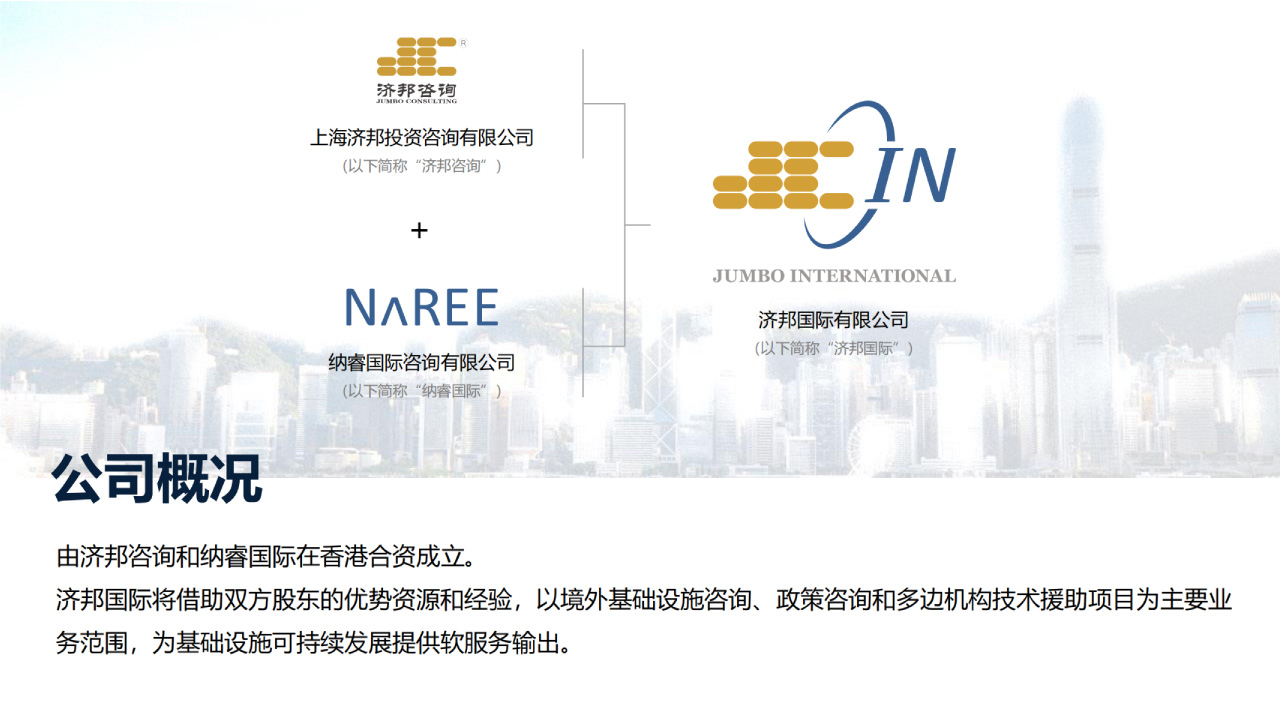 上海濟(jì)邦投資咨詢有限公司 (“濟(jì)邦咨詢”或“濟(jì)邦”) 是一家提供綜合性專業(yè)服務(wù)的基建咨詢機(jī)構(gòu)。 自2002年成立以來(lái), 濟(jì)邦為基礎(chǔ)設(shè)施相關(guān)的各級(jí)政府、 投資運(yùn)營(yíng)商、 工程承包商、 金融機(jī)構(gòu)等市場(chǎng)主體提供從規(guī)劃研策、投融資交易、建設(shè)交付管理、監(jiān)管優(yōu)化,直至運(yùn)營(yíng)維護(hù)及資產(chǎn)管理的全壽命期或分段分項(xiàng)咨詢服務(wù)。遍及單體項(xiàng)目、片區(qū)園區(qū)及城市開發(fā)建設(shè)和管理。