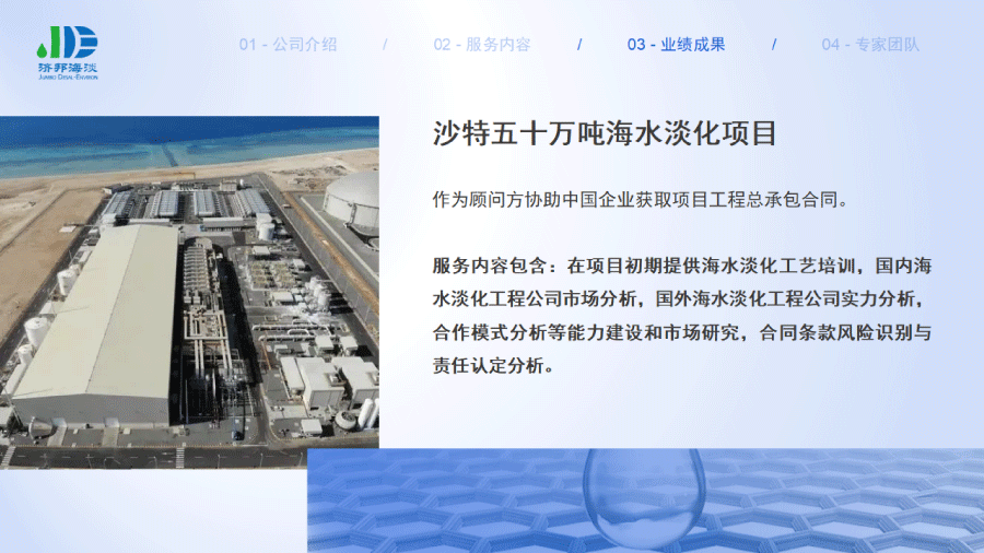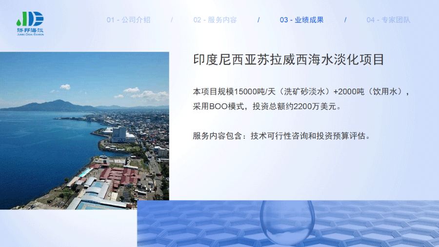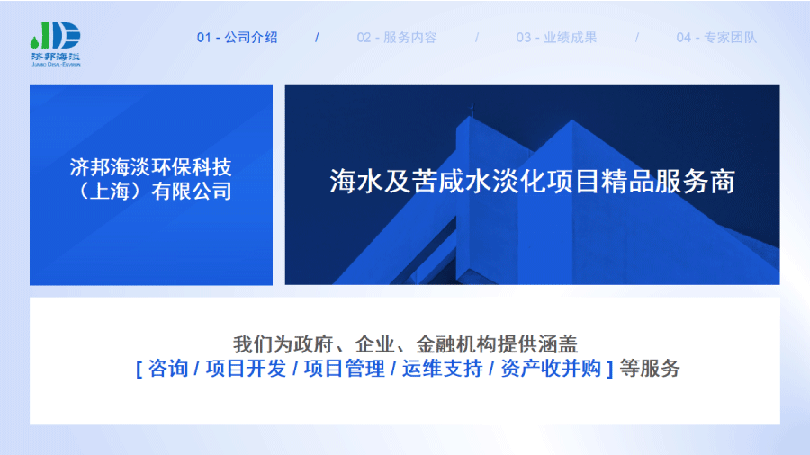 企業(yè)簡(jiǎn)介 組織架構(gòu) 子公司 - 濟(jì)邦國(guó)際有限公司 子公司 - 濟(jì)邦海淡環(huán)??萍?上海)有限公司 里程碑事件 分支網(wǎng)絡(luò) 服務(wù)行業(yè) 專業(yè)團(tuán)隊(duì) 九大業(yè)務(wù)領(lǐng)域 項(xiàng)目業(yè)績(jī) 出版叢書 行業(yè)影響